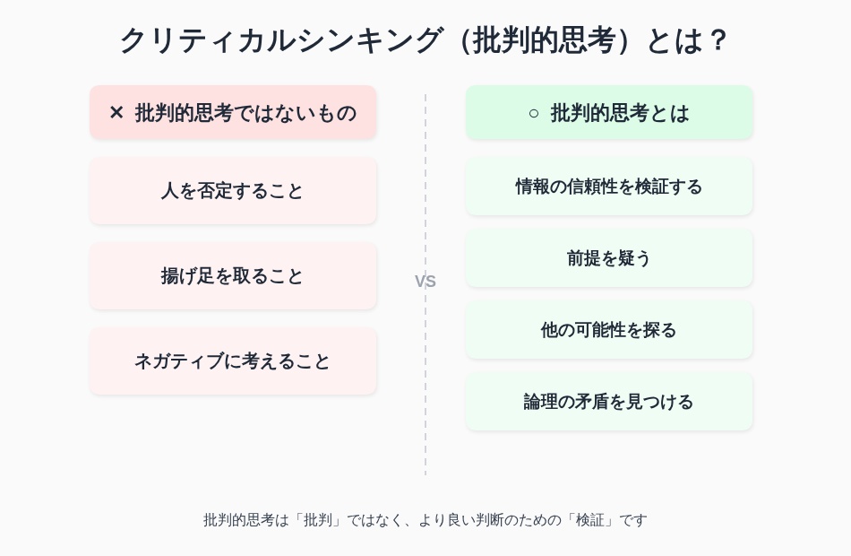 なるほど。批判的思考って、ただ疑うんじゃなくて、より良い判断をするためなんですね