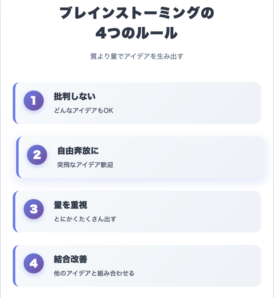 - ブレインストーミング、逆転の発想、制約の活用で創造性を発揮